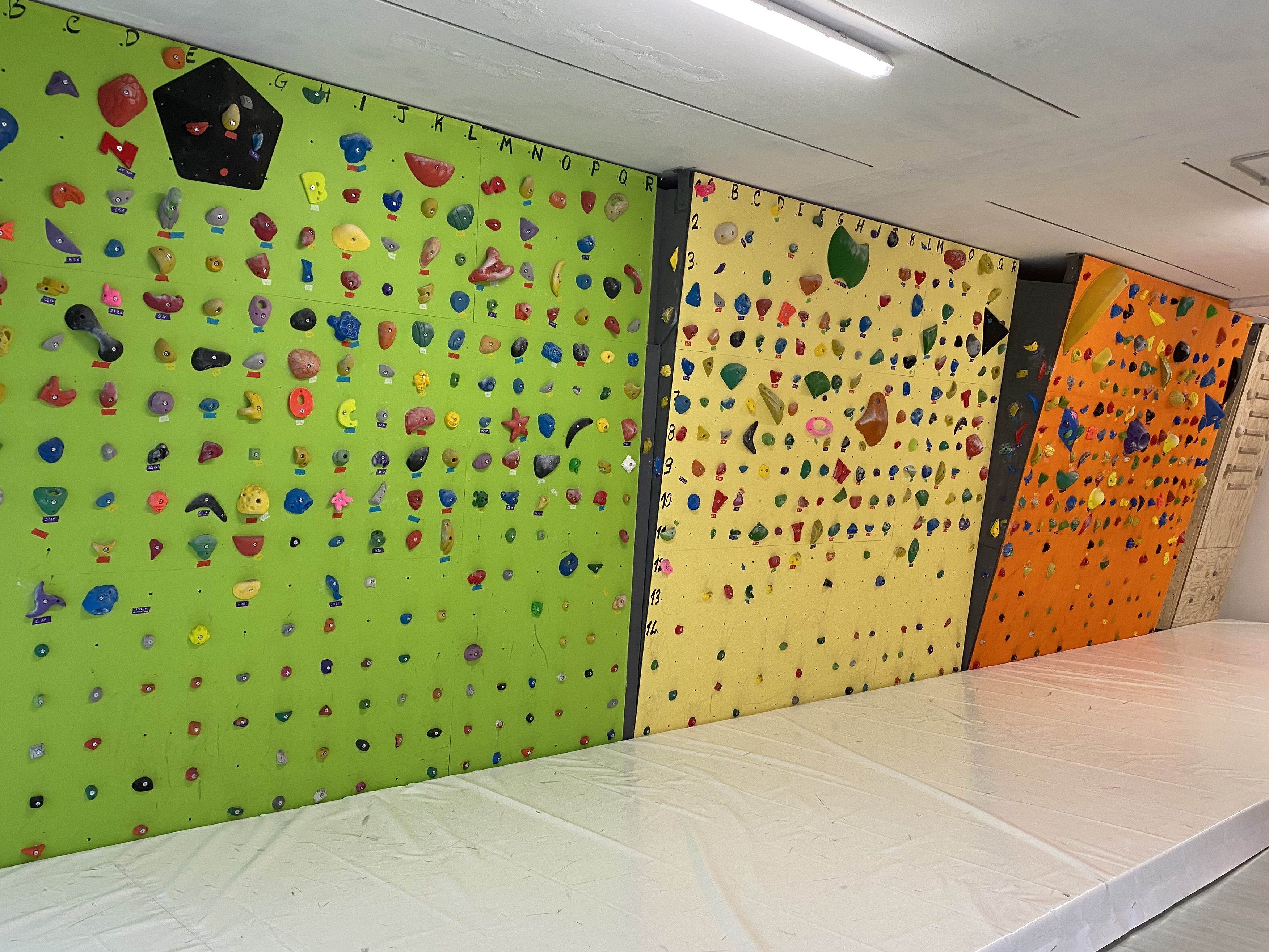 La palestra offre 130 mq di pannelli per arrampicata.